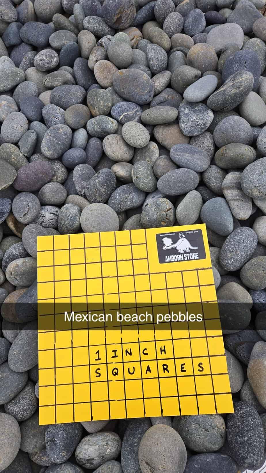 Mexican Beach Pebbles come from Baja Mexico and are all hand selected and sorted. These are the most expensive decorative rock. We have various sizes available. Standard sizes we stock are 1/2″ x 3/4″ 1×3, 3×5 and 4×8. Black is the most common variety but Baja Sunburst (orange/reddish) is also available.